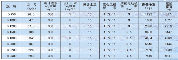 | 除碳器規(guī)格參數(shù) |